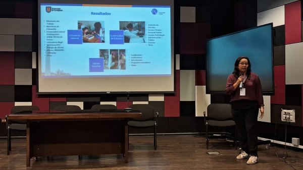 Las docentes Abigail Díaz, Cristina Orozco y Solange Barría actuaron en representación del Programa de Formación Socioloaboral, dando a conocer las principales investigaciones y los buenos resultados obtenidos por el programa en los 17 años que lleva de funcionamiento en la U. Central.