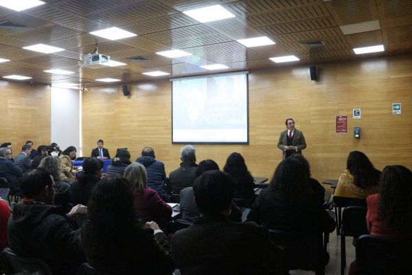 El martes 28 de mayo en el Auditorio 2 del edificio Vicente Kovacevic II, se llevó a cabo el encuentro entre las autoridades de la Universidad Central, encabezadas por el vicerrector académico, Emilio Oñate, acompañado del vicerrector de Desarrollo Institucional, Christian Nicolai, el Vicerrector de Finanzas, Mario Pinto Astudillo, el Director General de Investigación, Felipe González López y el Director de Postgrado, Gerardo Coppelli Ortiz, quienes dieron a conocer en mayor detalle los cambios anunciados respecto de la nueva estructura orgánica institucional.