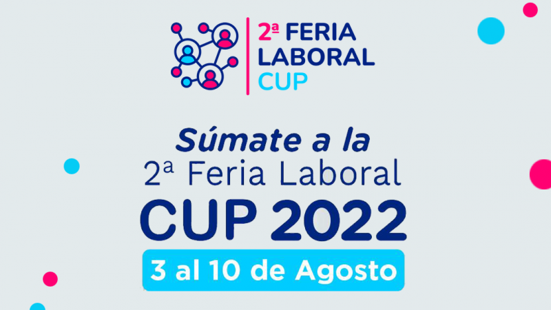 La Corporación de Universidades Privadas de Chile tienen el agrado de invitar a las alumnas y alumnos de último año de las carreras a la Segunda Feria Laboral CUP que se realizará de manera online entre el 3 y el 10 de agosto.