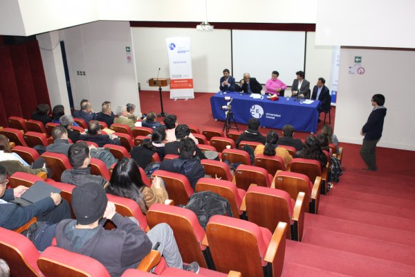 Tras las presentaciones, ambos analistas se sumaron al ditrector de la carrera de Ingeniería Civil en Minas, Francisco Rivas, a la profesora Regina Toloza y al profesor Leonardo Silva, para un conversatorio en el que también respondieron dudas de los y las asistentes.