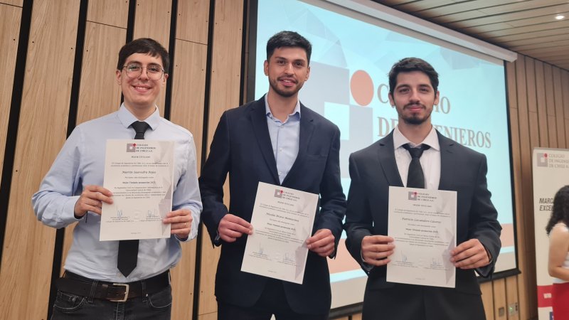 En la ceremonia, en que se premió a los 141 mejores titulados de las distintas carreras de ingeniería del país, fueron destacados Martín Saavedra Rojas, de Ingeniería Civil en Computación e Informática junto a Nicolás Bravo Montecinos y Patricio Lavandero Cáceres de Ingeniería Civil en Obras Civiles.