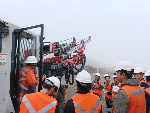 En la Mina San Antonio, una operación subterránea, los estudiantes ingresaron a la mina equipados con sus Elementos de Protección Personal (EPP), donde visitaron un refugio minero con altos estándares de seguridad y conocieron su funcionamiento. También tuvieron acceso a un caserón de explotación y, en superficie, interactuaron con un equipo de perforación subterráneo marca Sandvik, equipado con tecnología de punta, funciones de perforación automática y un avanzado sistema de control inteligente.