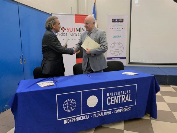 Con una charla magistral, sobre las perspectivas y desafíos futuros de la minería, se contextualizó el encuentro que formalizó la alianza entre la Universidad Central (UCEN) y la Asociación Gremial de Suministradores Técnicos y de Ingeniería para la Minería e Industria (Sutmin A.G.), a través de un convenio marco de colaboración mutua, suscrito por los máximos representantes de ambas instituciones: Santiago González, rector de esta casa de estudios y Sergio Lecannelier, presidente del directorio de la agrupación gremial.