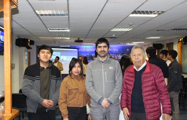 Estudiantes y profesores de la carrera de Ingeniería Civil en Minas participaron en la tradicional actividad "Jueves Minero", organizada periódicamente por el Instituto de Ingenieros de Minas de Chile (IIMCH). En esta ocasión, al evento asistió el Director de la carrera, Francisco Rivas, el profesor y miembro del Instituto, Francisco Zúñiga y dos estudiantes provenientes de Perú que están realizando sus pasantías en nuestra universidad, Lisbeth Arqque y Gustavo Sinca.