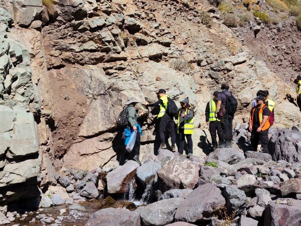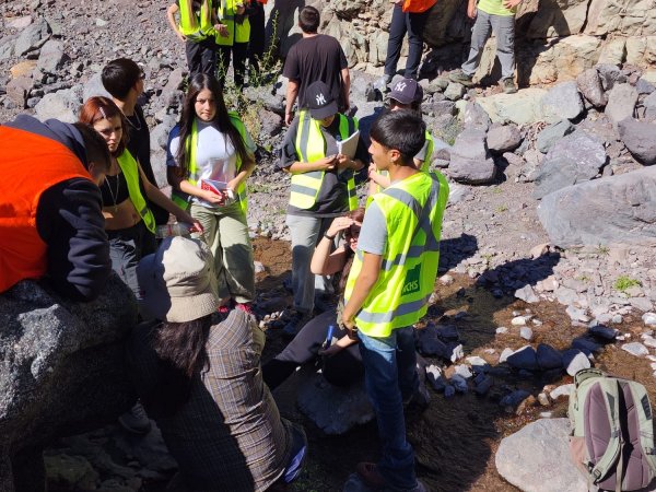 65 estudiantes viajaron, acompañados de parte del cuerpo docente de la carrera, hasta la quebrada Las Amarillas en el Cajón del Maipo.