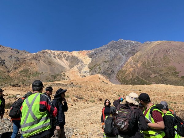 Desde calle Eyzaguirre y con 3 buses un grupo de 65 nuevos y nuevas estudiantes de Geología se dirigieron al Cajón del Maipo en compañía del director de carrera, Felipe Contreras, el profesor Camilo Palape y la docentes Valentina Medel y Benjamín Donoso.