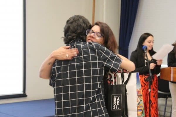 Los y las alumnas, cada quien con su rol dentro de la organización, agradecieron el compromiso y participación de Ángela Morales entregándole dos presentes.