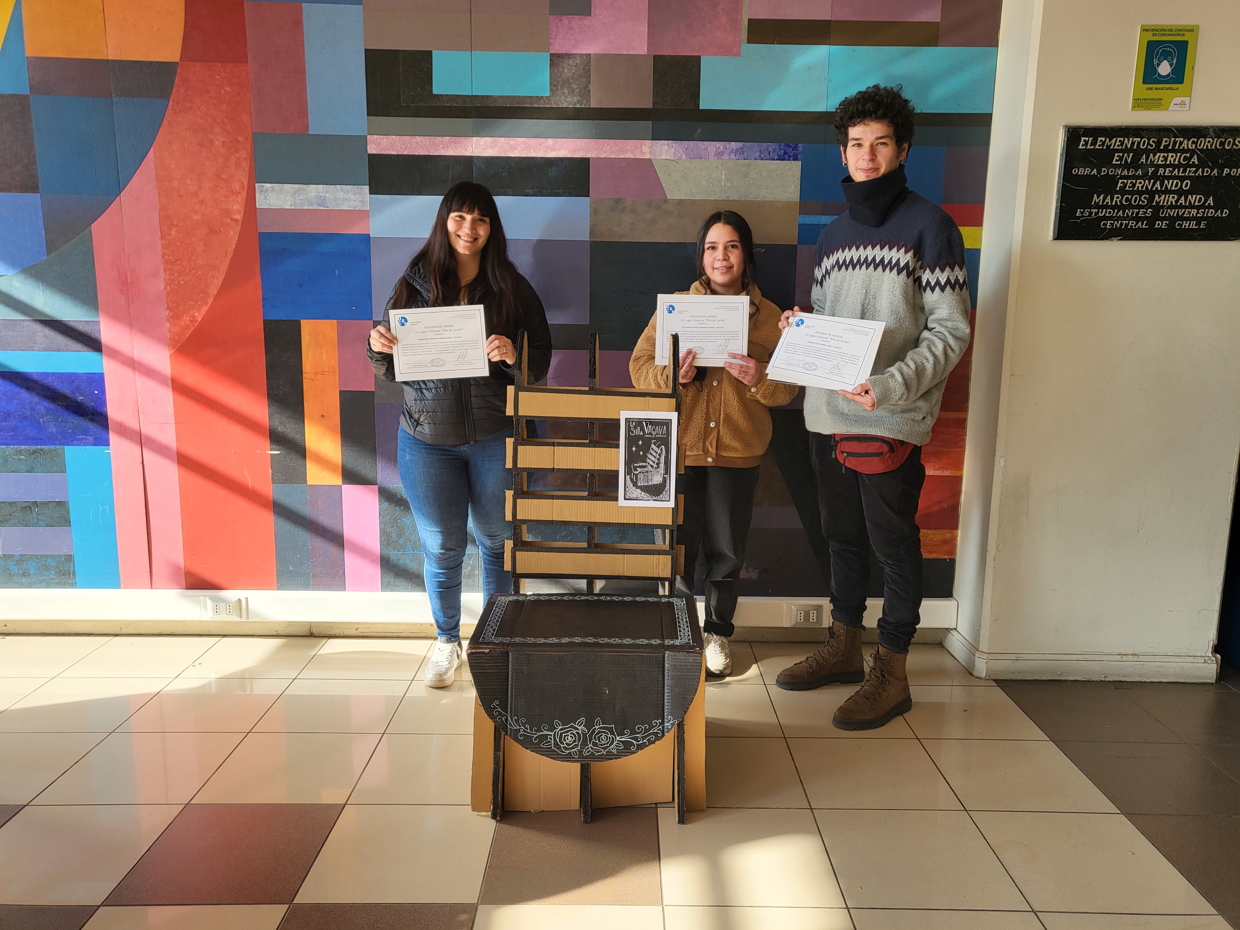 La asignatura, impartida por el docente Alejandro Torres, permitió que distintos grupos presentaran creaciones propias. EL equipo ganador fue el compuesto por las estudiantes Valentina Guzmán Vivanco de Ingeniería Civil en Obras Civiles, Valentina Molina Báez de Ingeniería en Construcción y Gabriel Gómez Sancy de Ingeniería en Construcción.