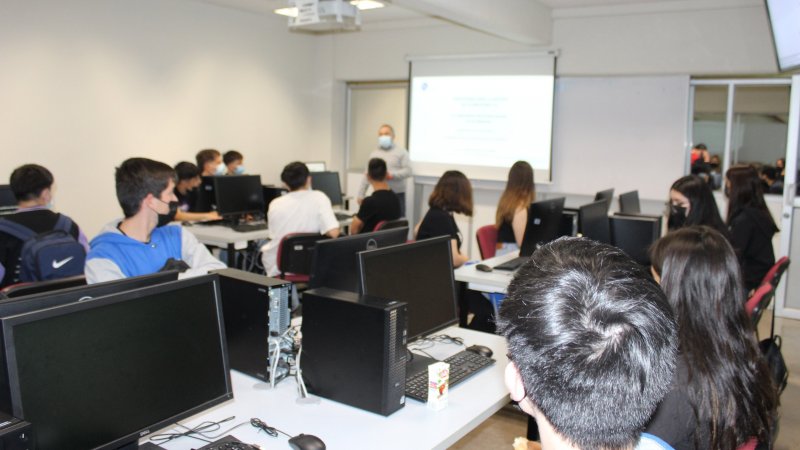En su paso por la FINARQ, los y las estudiantes pudieron escuchar una charla del académico Alejandro Sanhueza en la que los introdujo a conceptos como ciencia, datos e información. Todo desde la mirada de la informática y la tecnología.