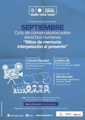 Al conmemorarse en septiembre 43 años desde el golpe de Estado, la Facultad de Ciencias Sociales (FACSO) de la Universidad Central llevará a cabo un ciclo de conversatorios sobre derechos humanos en los que participarán destacadas agrupaciones que surgen a partir de lugares de detención y tortura que existieron durante la dictadura militar de Pinochet.
