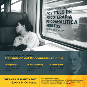 El evento forma parte de las actividades de extensión del Postítulo de Psicoterapia Psicoanalítica Adultos, que dicta la Facultad de Ciencias Sociales de la Universidad Central.