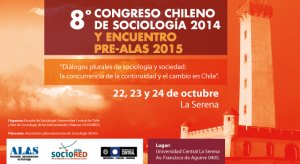 Con la expectativa de reunir a más de 500 investigadores, académicos y estudiantes de Sociología, pertenecientes a más de 100 centros de estudio y universidades a nivel nacional e internacional, la comisión organizadora liderada por académicos de la Escuela de Sociología de la Universidad Central de Chile junto a la Red de Sociología de las Universidades Chilenas (SOCIORED) organizan el 8° Congreso Chileno de Sociología y Pre – ALAS 2015.