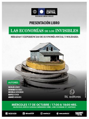 La Escuela de Sociología de la Facultad de Ciencias Sociales de la Universidad Central de Chile, realizará el lanzamiento del libro "Las economías de los invisibles: miradas y experiencias de economía social y solidaria" de los autores: Nicolás Gómez, Howard Richards, Michela Giovannini, Mayeli Ochoa y Andrés Monares, editado y publicado por Ril.