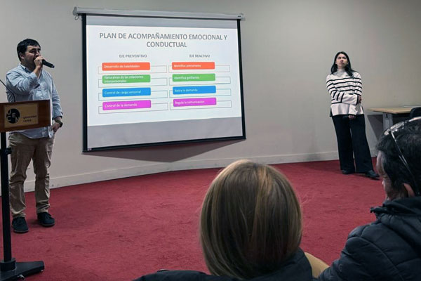 La exposición abordó contenidos vinculados a la Ley 21545 (Ley de Autismo), el manejo de la desregulación emocional y conductual (DEC) y el Plan de Acompañamiento Emocional y Conductual (PAEC), integrando estrategias desde un enfoque de integración sensorial y una perspectiva ecológica.