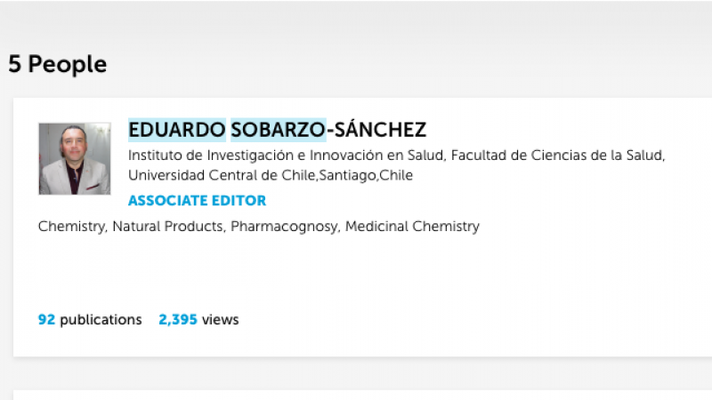 El Dr. Eduardo Sobarzo Sánchez e investigador UCEN, fue nombrado por el Profesor Michael Heinrich de la University College London (UCL), como Editor Asociado en la especialidad de Etnofarmacología, que es la búsqueda de sustancias derivadas de plantas con acción farmacológica y que son conocidas por pueblos y culturas ancestrales, para la revista internacional Frontiers in Pharmacology de cuartil Q1. https://www.frontiersin.org/