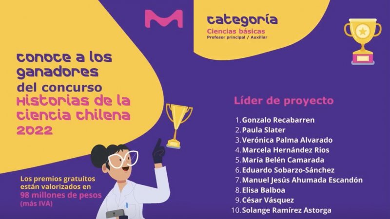 «Historia de la Ciencia Chilena 2022» es el nombre del concurso en el que participó el Dr. Eduardo Sobarzo-Sánchez, con un formato video de menos de tres minutos, donde da cuenta de la experiencia que significa liderar un proyecto que aporte al crecimiento de la investigación en Chile, en especial dentro de nuestra casa de estudios, y que cuenta con el apoyo de Merck, una empresa que en el año 2018 cumplio a nivel internacional 350 años. Dicho proyecto se tituló «Una aproximación terapéutica en contra de la depresión y la ansiedad: Fortaleciendo la Salud Mental en Chile».