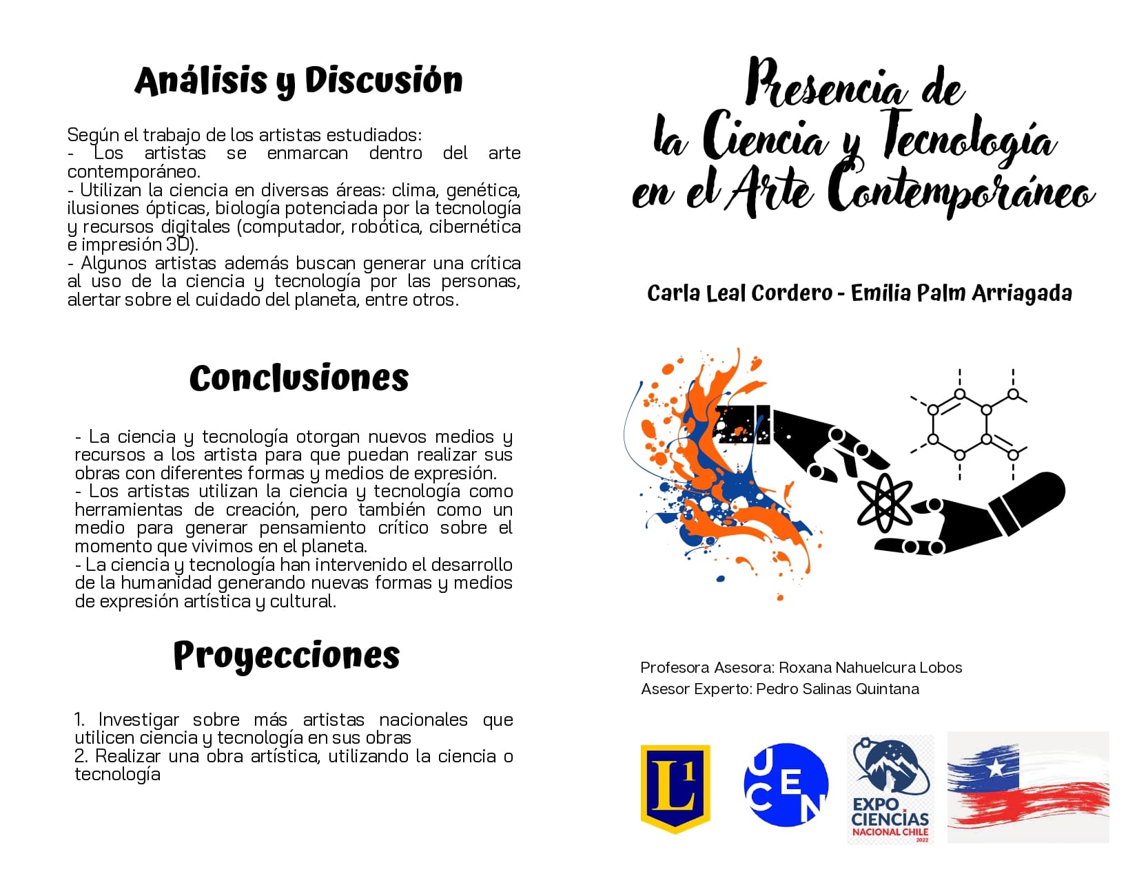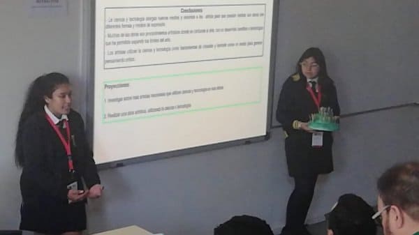 "El proyecto desarrollado por las estudiantes del Liceo 1, en conjunto con su profesora (Roxana Nahuelcura), realmente me ha sorprendido mucho no solo por el trabajo y compromiso demostrado, sino porque además, en su fondo teórico, es un proyecto que ha logrado demostrar cómo la ciencia, el arte y la tecnología nunca han sido dimensiones separadas en el desarrollo del conocimiento y la cultura". Con estas palabras el Dr. Pedro Salinas, investigador del Instituto de Investigación y Postgrado, describe su experiencia de participar como asesor experto junto a las estudiantes Emilia Palm Arriagada, Carla Leal Cordero y la profesora Roxana Nahuelcura del Liceo 1 Javiera Carrera de Santiago.