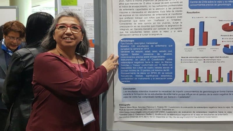 Intuitively, I realized Chile was aging and that it was necessary to educate ourselves and begin to see in what conditions people age. This interest was accentuated when the person who took care of my children had an emergency health problem. I believed she was much older than me but we realized we were the same age and began to compare our life stories. I believe the information obtained has allowed me to implement self-care health education programs for the elderly, train my future peers, and motivate them to work with the elderly, complementing their training with the participation of older people in classes and projects.