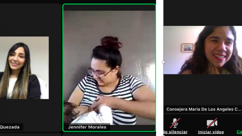 organización de "La Comunidad de la Leche", donde se realizan diferentes instancias de consejerías a madres durante este periodo tan significativo para la vida de los niños y niñas. El día sábado 21 de noviembre a las 14:00 horas, la docente fue la guía de la mexicana Jennifer Morales madre de una lactante de tres meses del Estado de Chiguagua. En la oportunidad pudo resolver varias dudas vía remota, entre ellas: extracción de leche y su almacenamiento, el significado de lactancia materna exclusiva, consejería y educación sobre la transición de lactancia mixta a total. Además pudo evaluar a través de la video llamada, el acople del binomio y las posiciones, en un ambiente de confianza y seguridad. Jennifer Morales, expresó sentirse completamente satisfecha con la atención, pero también mucho más segura y empoderada de su proceso de lactancia.