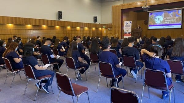 En el Aula Magna Fundadores del Centro de Extensión Hugo Gálvez Gajardo se realizó la ceremonia de investidura de la carrera de Enfermería, donde las y los estudiantes por primera vez usan su uniforme y marca de manera simbólica el ingreso a las prácticas de campo clínico, constituyendo un hito en su vida estudiantil.