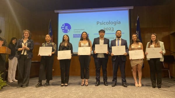 El acto solemne estuvo encabezado por el director de la Escuela de Psicología y Terapia Ocupacional, Gonzalo Soto, y por la directora de la carrera de Psicología, Carolina Pezoa, quienes reconocieron el esfuerzo y trabajo de sus nuevos colegas. Esta ceremonia “marca el inicio de una trayectoria exitosa, profesional, con una formación acabada con nuestro sello de carrera: teoría para la transformación situada. Les deseo el mayor de los éxitos”, dijo la profesora Pezoa, quien además dejó un consejo para los nuevos/as titulados/as: “Un consejo de corazón, guardar la ética en estos tiempos que son convulsos, respetar siempre al otro y animarse a seguir adelante porque es una carrera que tiene muchos vaivenes que hay que saber sortear de la mejor manera”.