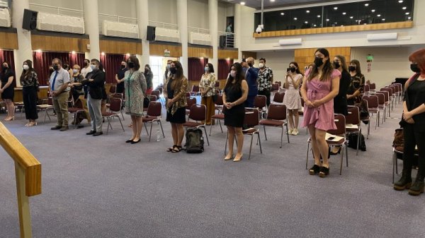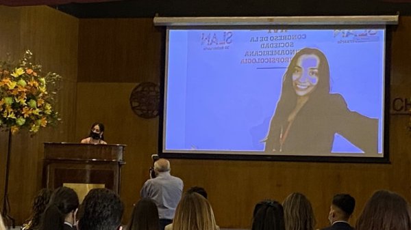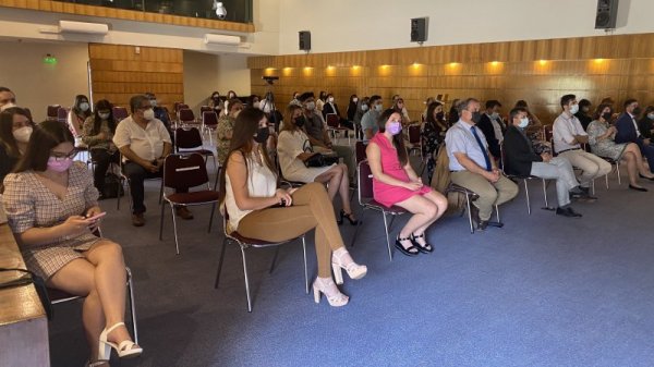 La ceremonia continúo con la entrega de los diplomas de títulos a la nueva promoción de egresados, donde se rindió un homenaje a la estudiante Pia Navarro Morales, quien falleció el año 2020.