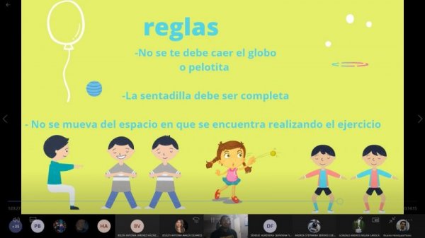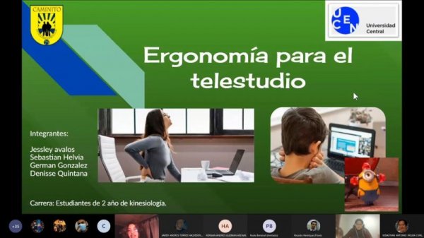 La Jornada comenzó con una exposición interactiva de la carrera de Nutrición y Dietética, la cual hizo referencia a alimentación saludable y recomendaciones para su implementación en contextos de pandemia, posteriormente vino el turno de los estudiantes de kinesiología, quienes expusieron sobre las temáticas de: Sedentarismo e inactividad física, ergonomía en telestudio, pausas activas y ejercicios de fuerza y resistencia. En cada una de las presentaciones se realizó una actividad interactiva donde el público en general pudo poner a prueba sus conocimientos, practicar ejercicios y estiramientos recomendados para espacios reducidos, y desafíos físicos para los escolares.