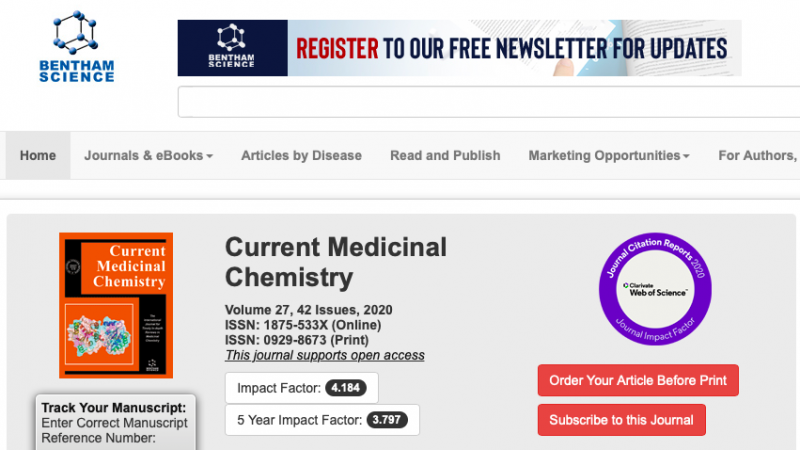 "Organometallic and Coordination Complexes: Rational design and fine-tuning of metalligand systems aimed at versatile application in Medicine", es el título del número especial de la Editorial Bentham Science.