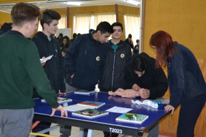 Fueron capacitados 34 estudiantes de tercero medio durante la clase de Biología, siendo el taller considerado con una calificación en dicha asignatura. En cuarto medio, 27 alumnos y dos profesionales, en tanto, realizaron el taller durante la clase de Física.