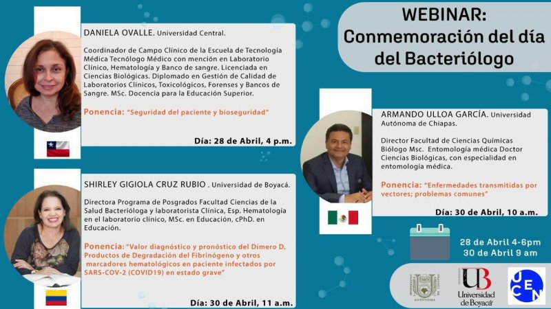 En la conmemoración del día del Bacteriólogo, la académica Daniela Ovalle expuso sobre "Seguridad del paciente y Bioseguridad" en la conferencia online organizada por la Universidad de Bocayá de Colombia.