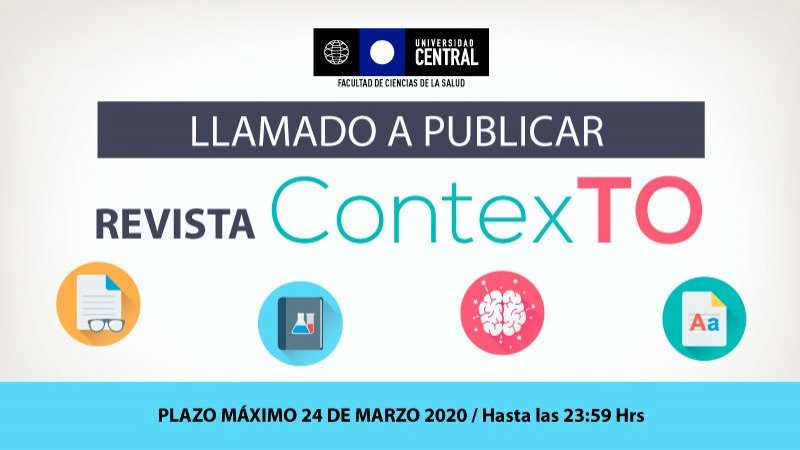 Invitamos a publicar en la edición número 6 de Revista ContexTO de la carrera de Terapia Ocupacional de la Universidad Central, el cual tendrá como temática la práctica de los Terapeutas Ocupacionales en contextos escolares. Participa escribiendo un artículo relatando una experiencia laboral, publicando un estudio de caso, investigación o sistematización.El proceso de publicación tiene una duración de 6 meses aproximadamente, donde el equipo de edición realiza un acompañamiento a los autores, ofrece guías y sugerencias de mejora del artículo. https://www.revistacontextoucen.cl/index.php/contexto/issue/archive Están invitados a participar: - Terapeutas que se desempeñen en contextos escolares; jardines infantiles, escuelas, colegios, liceos, en modalidad regular o especial, niveles pre básicos, básicos, media y que cuenten con motivación para escribir un artículo sistematizando su experiencia de práctica. - Terapeutas ocupacionales que hayan realizado investigación, seminarios de título o tesis de grado, en la temática de terapia ocupacional en contextos escolares y que cuenten con motivación para publicar sus trabajos. Quienes estén interesados les pedimos completar el formulario con plazo máximo 24 de Marzo del 2020. https://forms.gle/PNZfgXQFdRgYnGWDA
