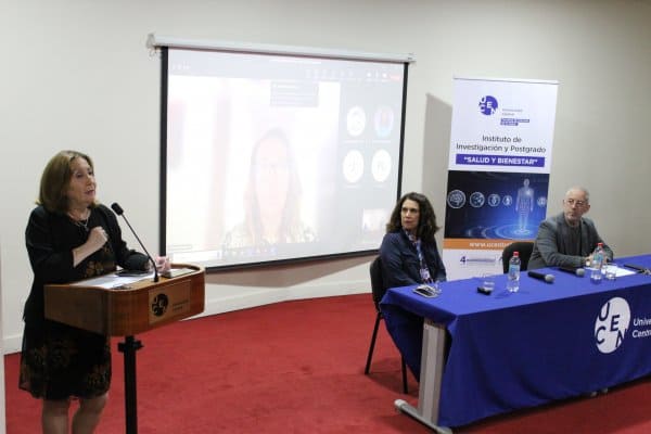 The event took place at the university’s Red Lounge and had the assistance of the president of the Honorable Board of Directors of the Universidad Central, Dr Patricio Silva Rojas, the dean of the Faculty of Medicine and Health Sciences Dr Gisela Alarcón Rojas, the secretary of the Faculty, Vanessa Hormazábal Bustamante, and the director of the Institute of Research and Postgraduate Studies Paola Andreucci Annunziata.