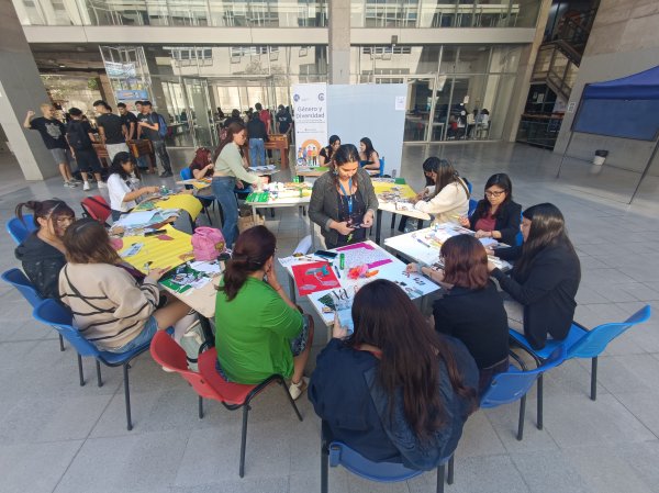En la semana de la mujer también se generaron otros espacios de encuentro en la sede GHU. Estudiantes de distintas carreras participaron en una instancia de creación artística donde a través de imágenes y recortes expresaron lo que han significado las mujeres a lo largo de su vida y sus experiencias en los distintos roles y ante la sociedad.