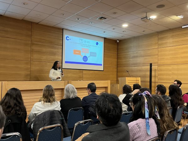 En su exposición, denominada “Beneficios de la Ciencia Abierta para la sociedad y desafíos para la Universidad”, la Directora Alterna del proyecto de la Universidad Central de Chile habló sobre el ecosistema en que se desarrolla la Ciencia Abierta, las oportunidades para los investigadores/as, algunos desafíos con la transparencia al momento de poner la información a disposición de otros, entre otros tópicos.