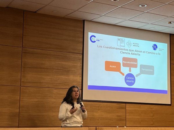 La Dra. Soledad Quiroz, Directora Alterna del InES Ciencia Abierta de la Universidad Central de Chile, expuso en la inauguración del InES Ciencia Abierta de la Universidad Autónoma haciendo eco en la colaboración y en reforzar lazos entre las instituciones que llevan a cabo estos proyectos.