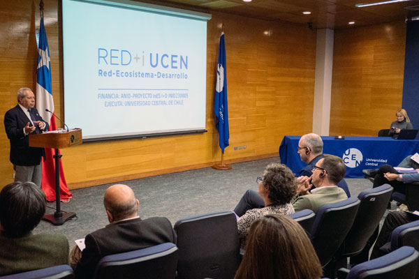 Con la participación de autoridades, académicos, investigadores y estudiantes, el martes 6 de mayo se desarrolló el segundo día de la Semana de la Innovación RED+i UCEN 2025, una iniciativa liderada por la Dirección de Desarrollo e Innovación de la Universidad Central de Chile (UCEN). La actividad se llevó a cabo en el auditorio Carlos Blin Arriagada del edificio VK II y contó con la presencia de miembros de la Honorable Junta Directiva (HJD), encabezados por su presidente, el Dr. Patricio Silva Rojas, así como de representantes de la Universidad de Ciencias Aplicadas de Münster (FH Münster), Carsten Schröder y Rolf Laakmann.