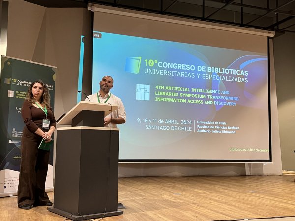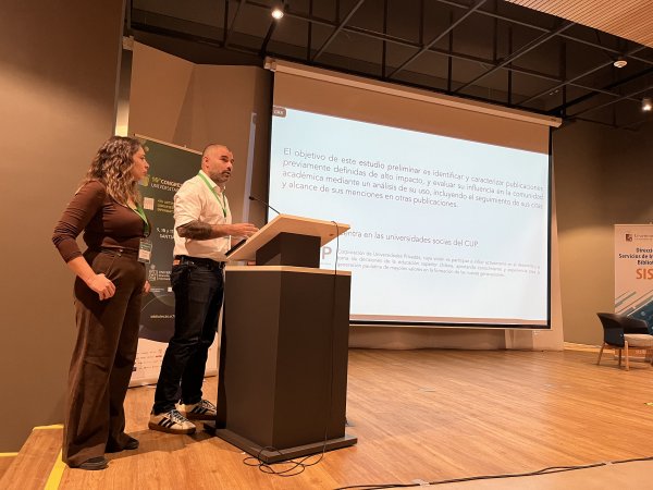 La Especialista de Información Científica de la Subdirección de Gestión del Conocimiento, Isabel Abedrapo y el asesor de la subdirección e investigador de la Universidad Central de Chile, Ricardo Hartley, participaron del 10º Congreso de Bibliotecas Universitarias y Especializadas, encuentro donde presentaron un estudio que caracteriza el uso e impacto de productos de investigación de universidades pertenecientes a la Corporación de Universidades Privadas (CUP).