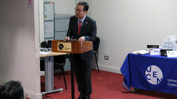 El evento contó con la presencia del Embajador de Corea en Chile, Hak-jae Kim, quien, en su discurso, destacó la importancia de estos intercambios culturales y el papel fundamental de los jóvenes en la amistad entre ambos países, lo que ya lleva más de 60 años. También asistió el decano de la Facultad de Economía, Gobierno y Comunicaciones, Luis Riveros, quien agradeció al Embajador por enseñarle sobre el Hangeul y se mostró impresionado por la creatividad de los dibujos y la exhibición de los clubes de cultura coreana del instituto.
