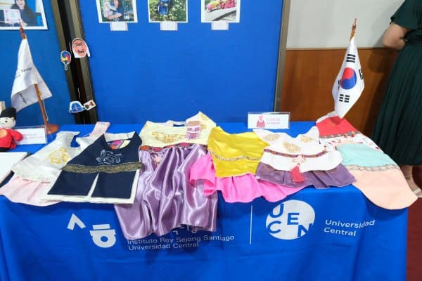 El evento se inició con una cautivadora exposición a cargo de los clubes de caligrafía y hanbok (vestimenta coreana). Los participantes disfrutaron contemplando cuadros decorados con frases y refranes en coreano, además de maravillarse con la exhibición de fotografías exclusivas que mostraban las mascotas de los estudiantes luciendo los trajes tradicionales que confeccionaron a lo largo del semestre.