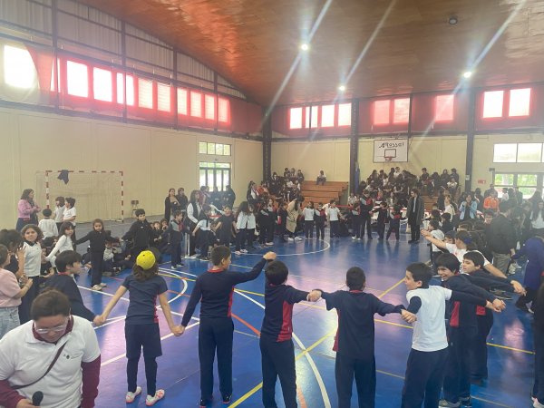 Tras el receso, estudiantes de todos los niveles se dirigieron al gimnasio, donde un grupo de alumnos y profesoras pudieron vestir nuevamente los Hanboks y modelar ante el colegio las distintas prendas que el Instituto había preparado para ellos; posteriormente, los más pequeños pudieron jugar la ronda tradicional Ganggangsullae, bailando al compás de los tambores, saltando y riendo; y, para finalizar, tanto estudiantes de enseñanza media como básica participaron en el famoso juego de la serie coreana El juego del calamar, llamado en español “Luz roja, luz verde”.