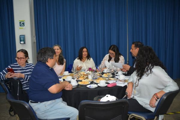 La reunión se llevó a cabo a través de cuatro mesas de trabajo, tres de ellas con representantes de instituciones externas que han participado de programas relevantes de VCM, de proyectos financiados con fondos concursables de VCM o de proyectos asociados a asignaturas con metodología A+A. La cuarta mesa estuvo constituida por egresados/as que han participado de acciones de vínculo con el entorno.