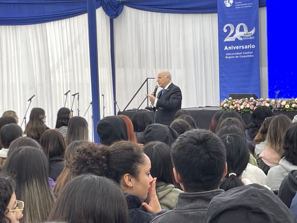 En el marco del vigésimo aniversario de la Universidad Central de Chile en la región de Coquimbo, el presidente de la Junta Directiva, Patricio Silva y el rector, Santiago González se reunieron en la explanada del edificio b con más 300 estudiantes de la sede para entregarles unas palabras de bienvenida ad portas también de dar por inaugurado un nuevo año académico.