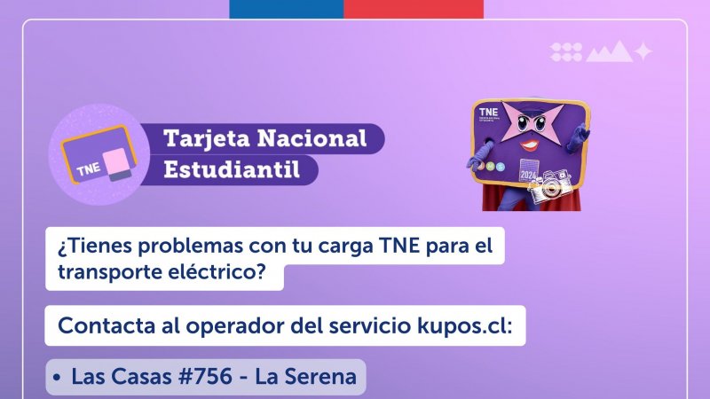 Si presentas problema de carga de tu TNE, debes contactar a tu operador Kupos: